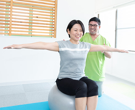 姿勢や動き方を整える軽い運動をします。上手に動かせていない筋肉を活性化し、不足している筋力を補います。